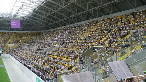 Rudolf Harbig Stadion mit 4000 Bläsern und natürlich der