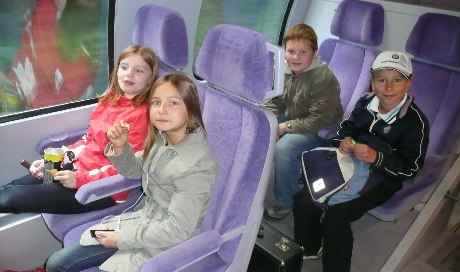 Lea, Hanna, Tim und Johannes auf dem Weg nach
