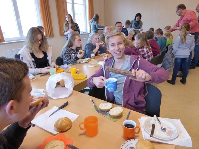 dabei und langte beim Frühstück kräftig zu |