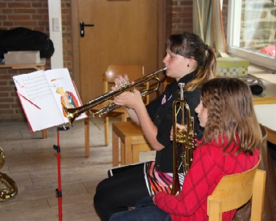 Bläserinnen und Bläsern haben wir auf der Jugendburg Hessenstein ein