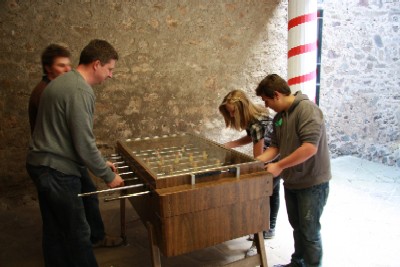 Daniel, Burkhard, Nils und Alexandra beim Kickern |