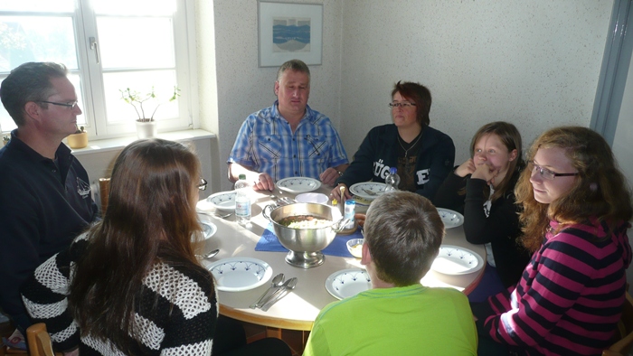 Lisa, Celia und Luisa am eingedeckten Tisch (die
