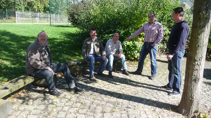 Die Älteren im Schatten auf der Bank.